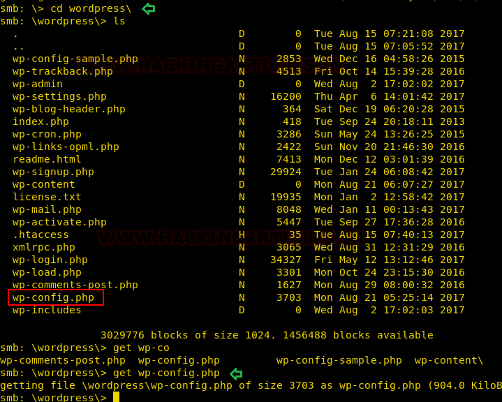 Looking further into the ‘WordPress’ folder that we have found earlier, we found the wp-config.php file. Let’s download it.
