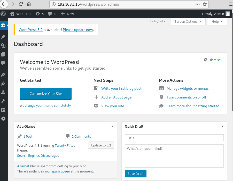 Now as we already know the WordPress page for admin from the previous list of WordPress content. We access the admin dashboard using the username and password that we found in the wp-config.php file.