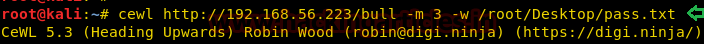 cewl http://192.168.56.223/bull -m 3 -w /root/Desktop/pass.txt