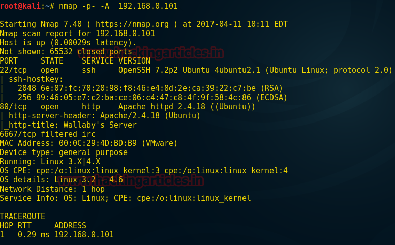 nmap -p- -A 192.168.0.101
