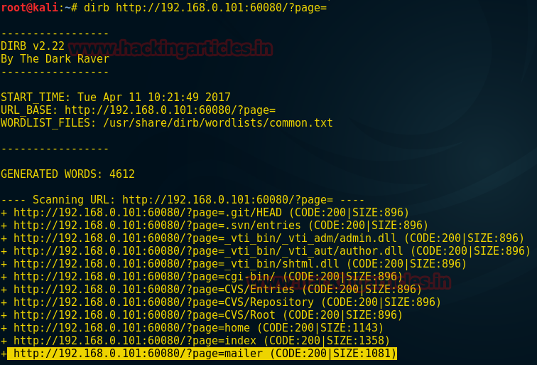 dirb http://192.168.0.101:60080/?page=