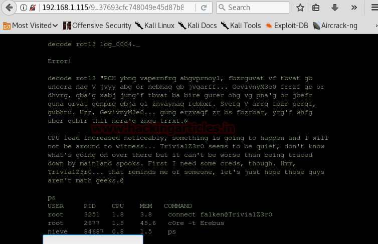 We check the files and find a few log files that are encoded. We use the decode command provided by the terminal to decode the files.