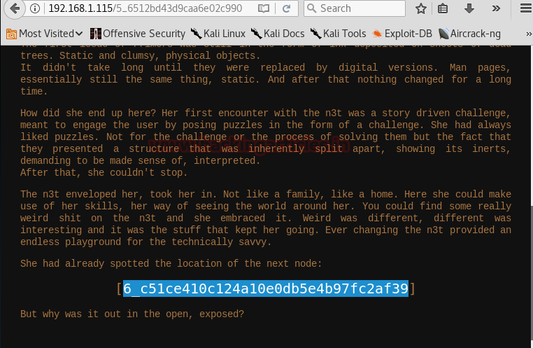To open the it we add “8_” in front of the hash to complete the url. We open it in our browser and find a page.