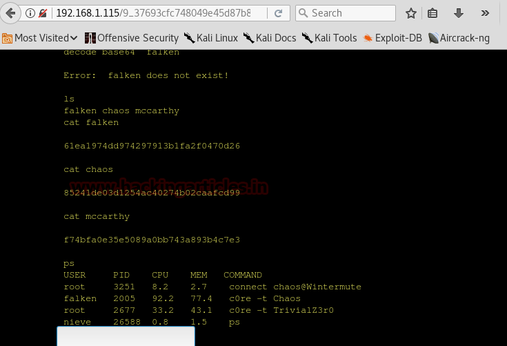 In the ~/usr/falken/ folder we find a hint, when we take a look at the processes we find a command that we need to run.