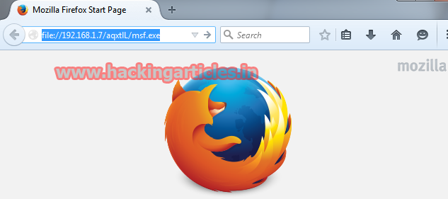 Now when the victim opens the following link (file://192.168.1.7/aqxtlL/msf.exe) it will show the page like given below