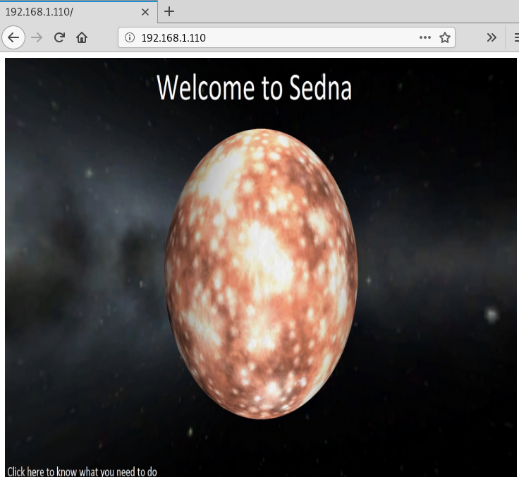 Today we found a Vulnerable Lab based on the 90377 Sedna. Sedna is a dwarf planet in our solar system. This vulnerable machine was created for the Hackfest 2016. We are going to download the VM Machine from here.