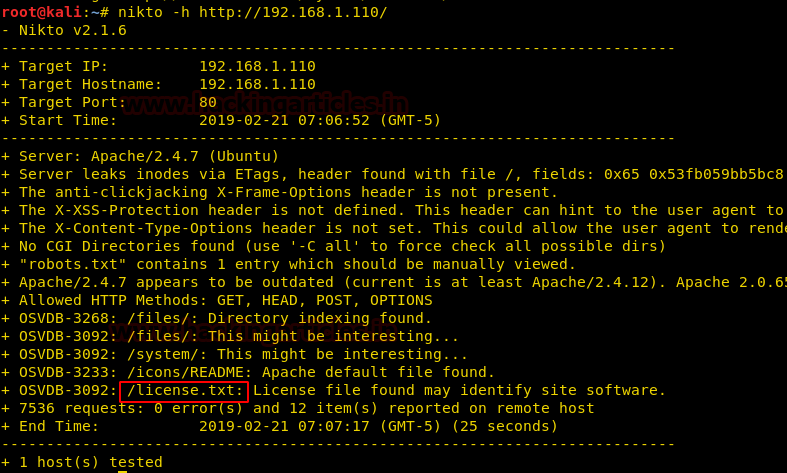 From the scanning result, we chose the highlighted file link for further enumeration. That is license.txt.