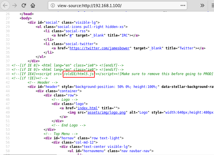 The home page has nothing to go on for us, therefore, we checked its page source.