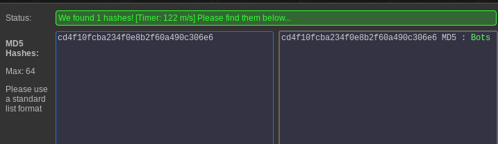 And yes! Opening it in the browser we found our 2nd flag. So let’s crack the MD5 value of the flag.