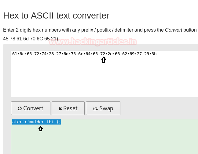 After conversion, the string became “alert(‘mulder.fbi);”.