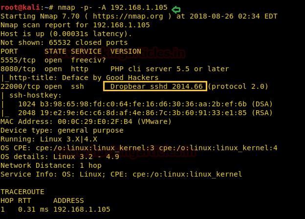 The second step is as usual as port scanning. In this scan, we’ll be using an all port aggressive scan using the most popular tool nmap.
