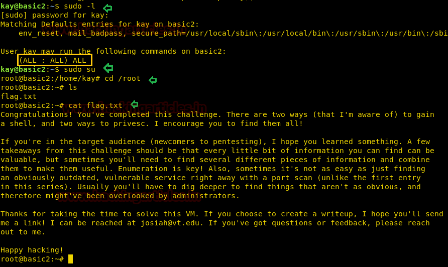 It surely asks for a root password. Let us type what we just got in pass.bak file. And you can observe kay has ALL permissions.
