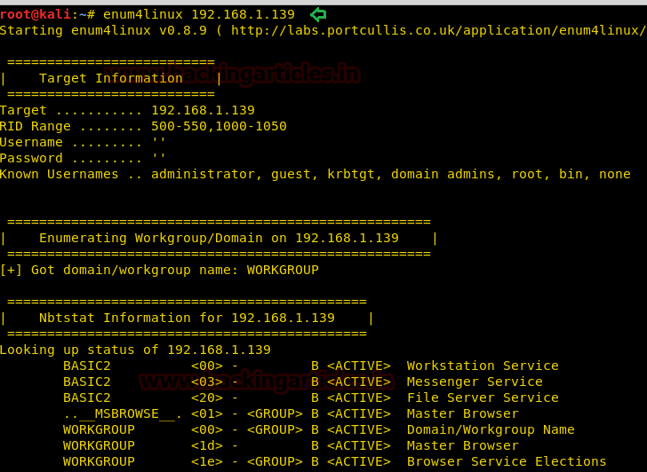 Here, we can see that port 22 is open. But we don’t have any users currently. Let’s use enum4linux and try to find the users available.