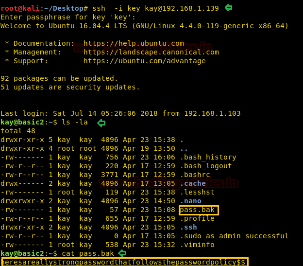 Voila!! We have successfully gained access to kay. Now let’s try and read that pass.bak file. It looks like it could have something valuable!