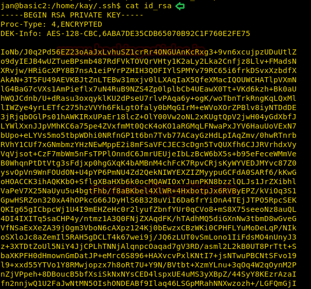 Hmmm… this id_rssa file looks fishy. Let’s read it using: cat id_rsa and copy paste it in the text file.