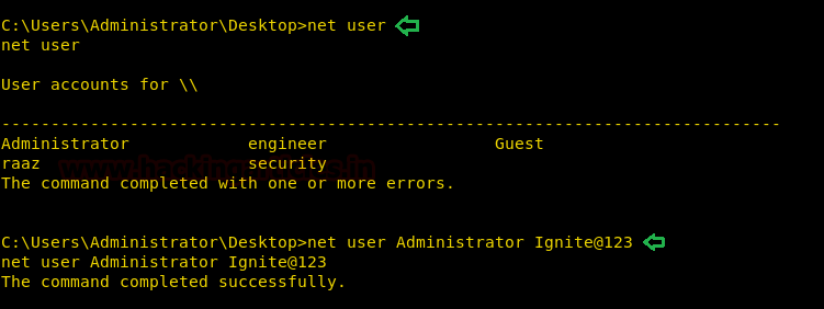 Then, we changed the password for Administrator because we can use it to login via telnet.