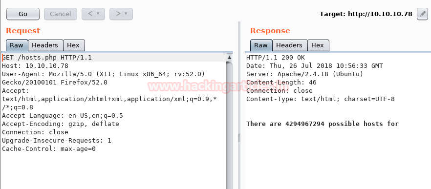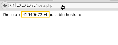 When I have explored /hosts.php in the web browser I found a message “There are 4294967294 possible hosts for” as shown below image. So I search in Google for 4294967294 hosts which were related to 255.255.255.254 as found in the above test.txt file.