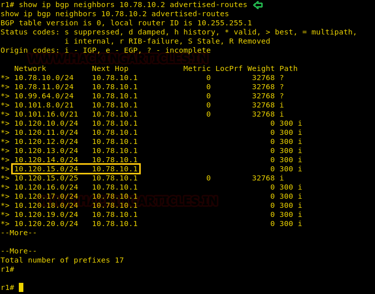 show ip bgp neighbors 10.78.10.2 advertised-routes