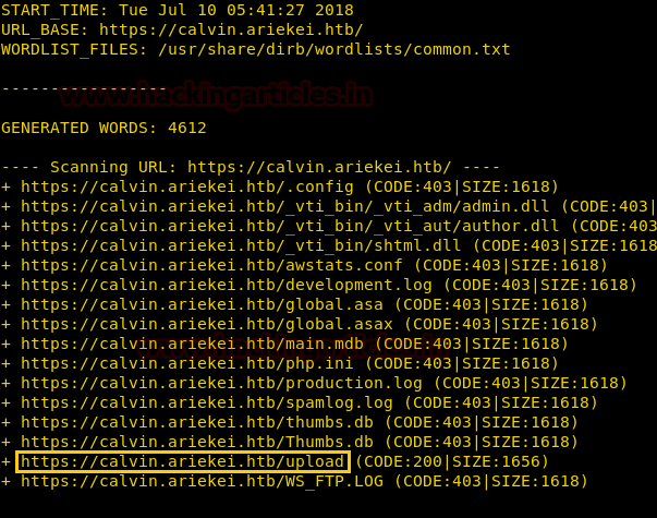 Now we use dirb to scan the other domain on the target server as it was showing different pages when we opened it in our browser.