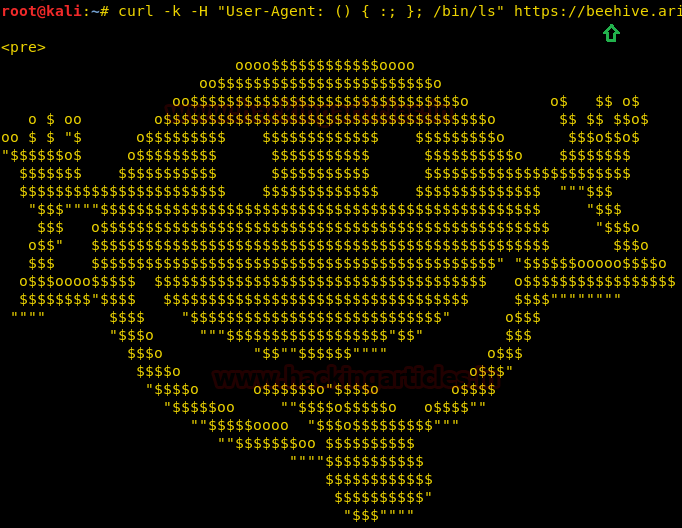 When we try to exploit this page using shellshock, we get an emoji which persists whenever we try to exploit it. This may mean there is a web application firewall that protects the server from this attack.