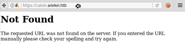When we open “calvin.ariekei.htb” we get an error message saying the requested URL is not found.