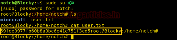 Then I moved into root directory where I found root.txt and again use cat command for reading this file.