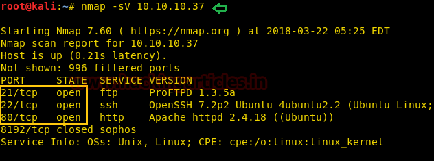 From the given below image, you can observe we found port 21, 22, 80 are open in the victim’s network.