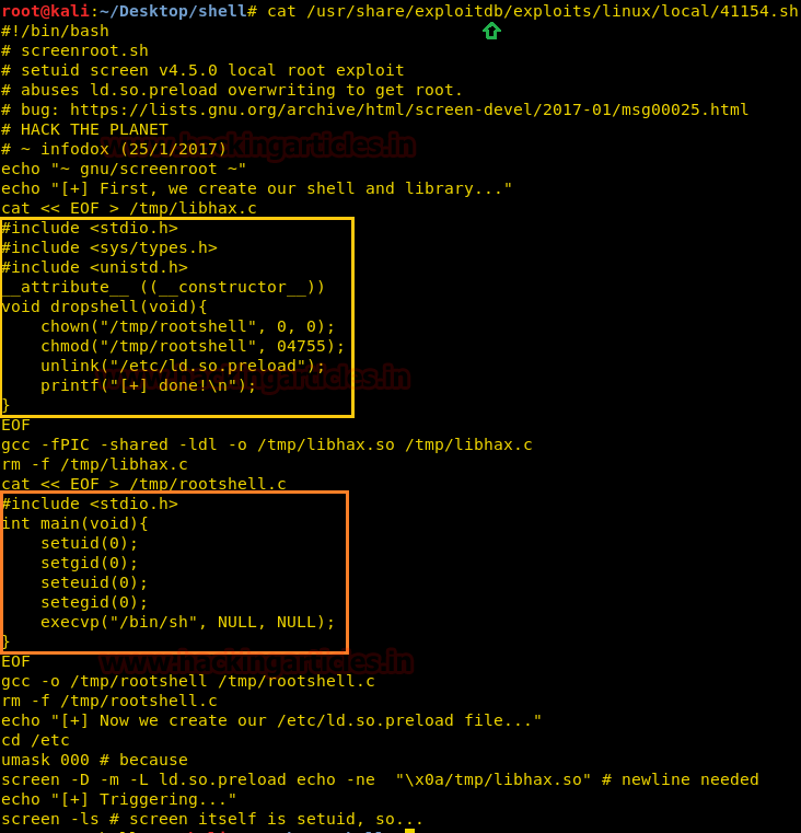 cat /usr/share/exploitdb/exploits/linux/local/41154.sh