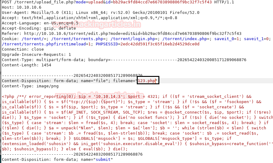 As you can see have edited the file name to 123.php. Now Click on Forward option in burp suite.