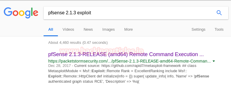 We figured out that we should try searching for the pfsense version which is 2.1.3 on google. And as usual, it came out to be a Remote Command Execution Exploit.