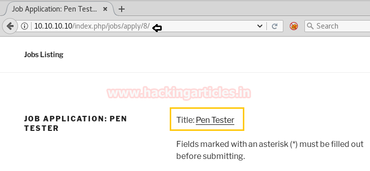 As you can see from the previous image, we have made an alight change in the URL. In which we have simply changed the end number by /10/ which opened a page stating Job application as you can see below.