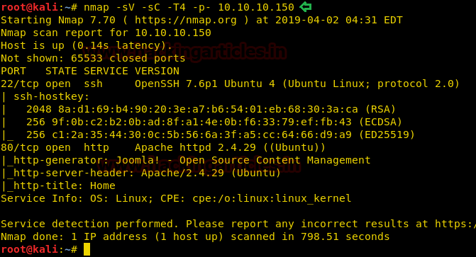 nmap -sV -sC -T4 -p- 10.10.10.150