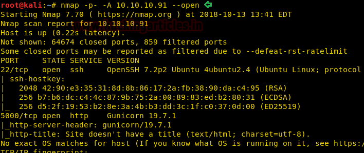 Note: Since these labs are online available therefore they have a static IP. The IP of DevOops is 10.10.10.91