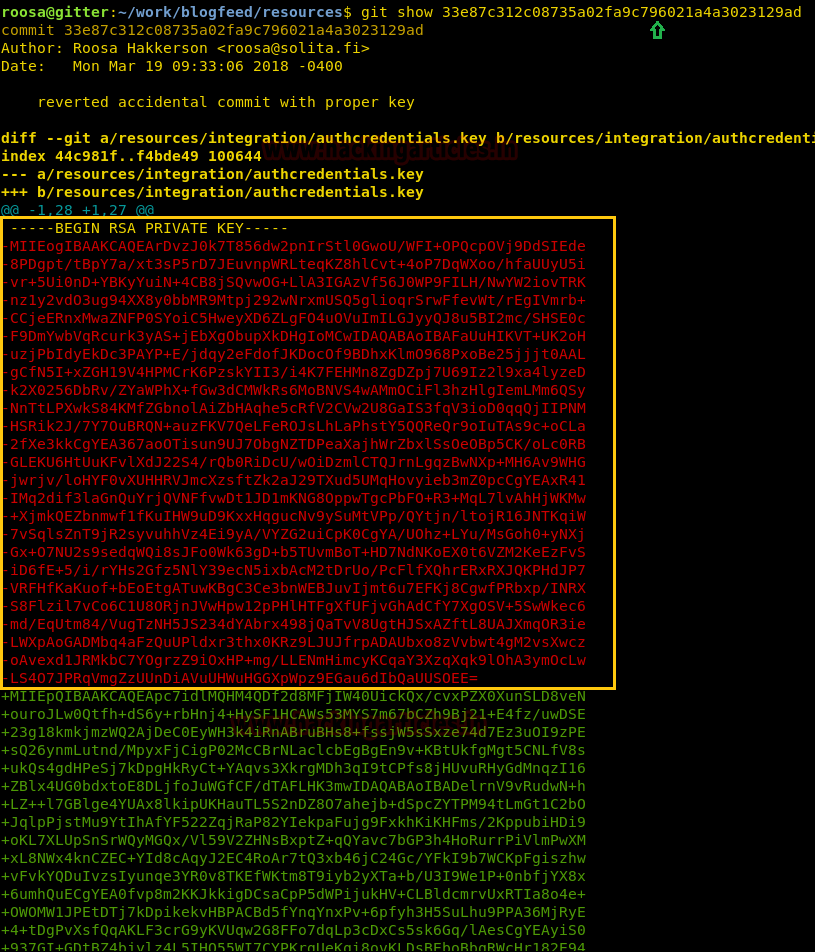 So we try some key along git show command to demonstrate the output result. And obtain RSA Private Key which was not working properly.