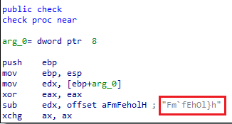 We reverse engineer them using IDA and find that this program XOR’s 9 with each character of the variable aFmFeholH. Now analyzing with IDA tells us that the variable contains “Fm`fEhO1}h”.