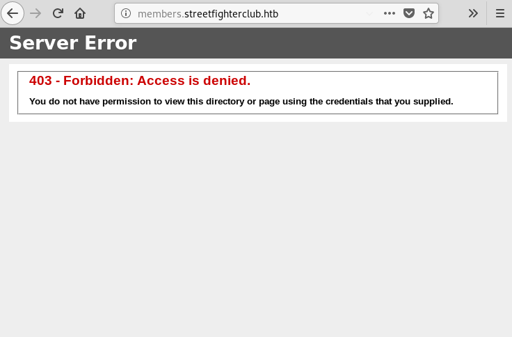 After bruteforcing, we find a subdomain called “members.streetfighterclub.htb” that gave HTTP code 403.