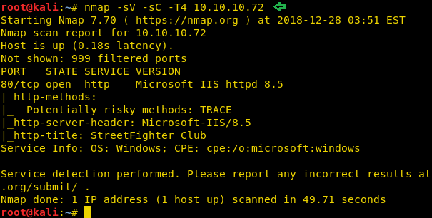 nmap -sV -sC -T4 10.10.10.72