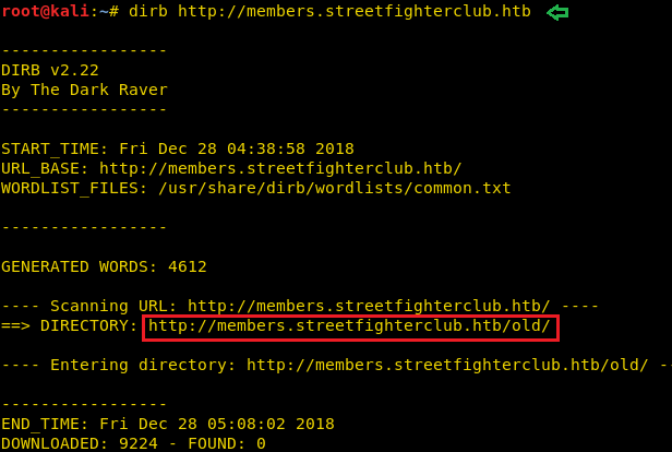 Now we run a dirb scan on the members.streetfighter.htb and find a directory called “old”.