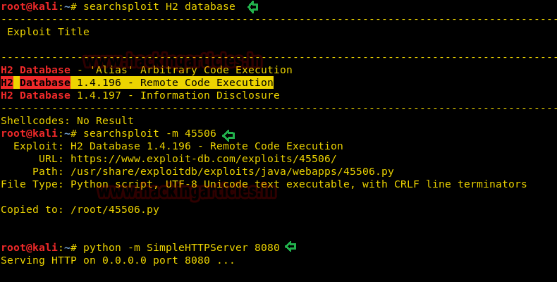 searchsploit H2 database