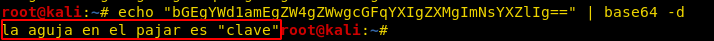 echo "bGEgYWd1amEgZW4gZWwgcGFqYXIgZXMgImNsYXZlIg==" |base64 -d