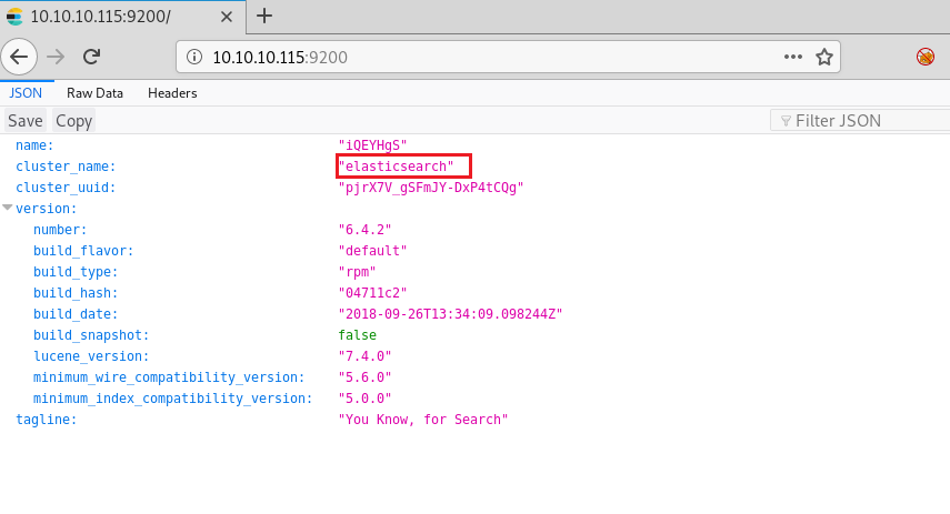 Then we navigate to port 9200 and found it was elastic search as shown in the image.