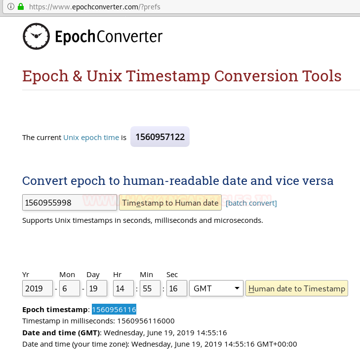 Now that we had the time in GMT, we headed to www.epochconverter.com and converted this time into an epoch timestamp.