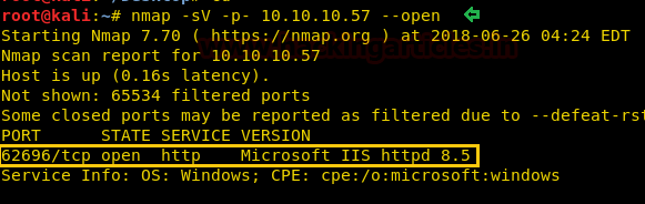 From the given below image, you can observe that we find port 62696 is open on the target system.