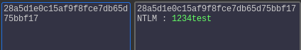 We decode the NTLM hash using hashkiller.co.uk and find the password to be 1234test.