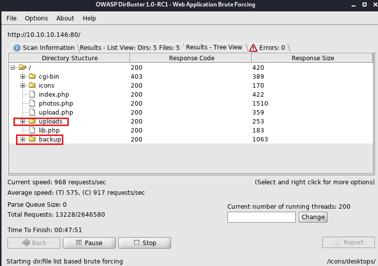 As a result I found some php files and directories like /uploads and /backup as shown in the given image.