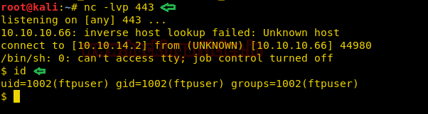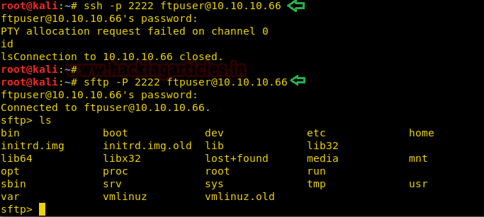 ssh -p 2222 ftpuser@10.10.10.66 sftp -p 2222 ftpuser@10.10.10.66